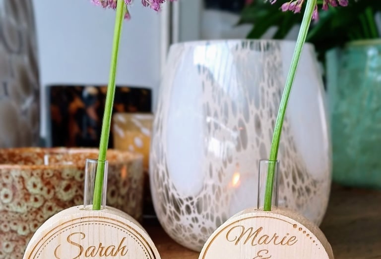 We engrave your message on site to offer to your guests.